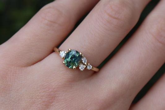 Anillo Montse Zafiro Verde Azul y Diamantes