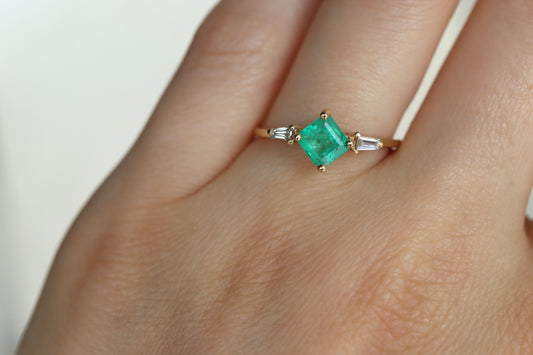 Anillo Elba Zafiro Verde y Diamante Baguette Fine