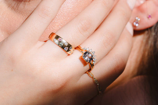 Anillo Elba Zafiro Verde y Diamante Baguette Fine
