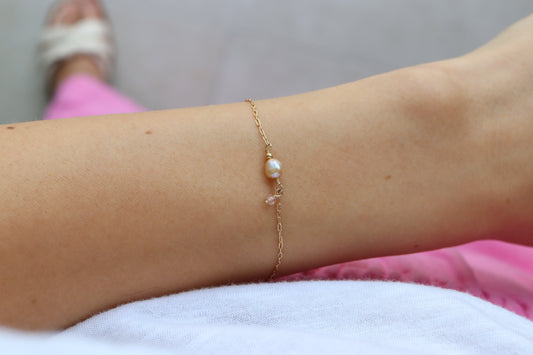 Pulsera Perla y Turmalina Rosa